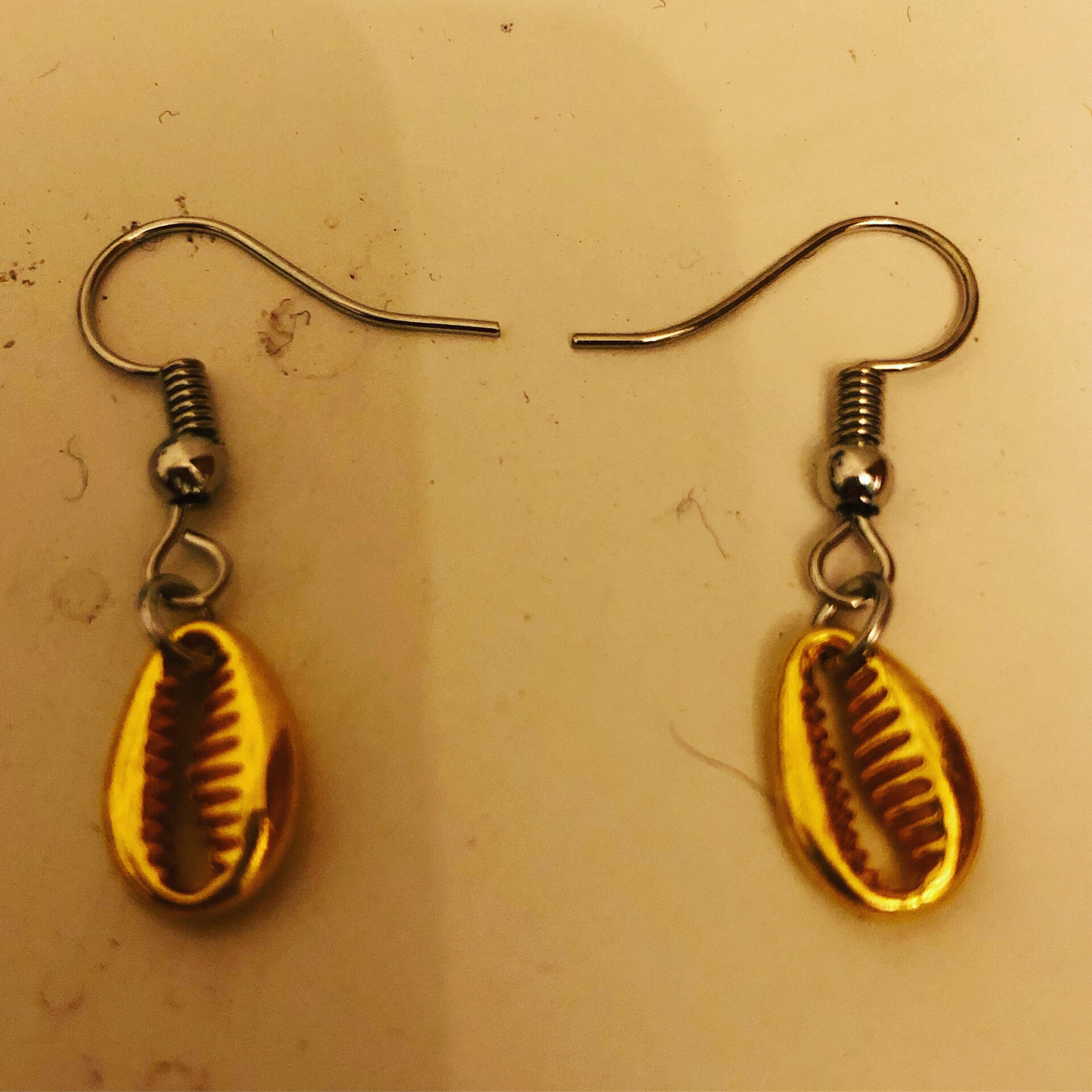 Mooie oorbellen met goude schelp, je kan ze ook in ketting of armband bestellen! (€0,80 cent verzendkosten)